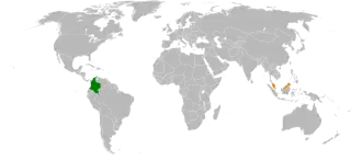 - ↑ a b c «Relaciones bilaterales». Embassy of the Republic of Colombia, Kuala Lumpur, Malaysia. Archivado desde el original el 4 de febrero de 2013. Consultado el 8 de diciembre de 2012.