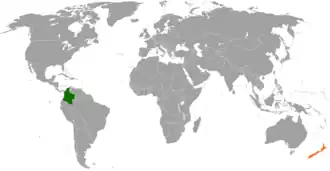 - ↑ Diplomatic relations between Colombia and New Zealand