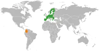- ↑ a b Cancilleria de Colombia, Cancilleria de Colombia. «Unión Europea». Consultado el 14 de mayo de 2022.