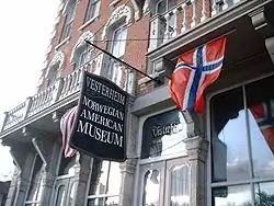 - Los noruegos estadounidenses celebran y mantienen su patrimonio de muchas maneras. Gran parte de esto se centra en las iglesias luteranas-evangélicas en las que nacieron, pero también en costumbres culinarias (lutefisk y lefse), trajes (bunad), y los días festivos noruegos (Syttende Mai, 17 de mayo) son populares. Un número de ciudades en los Estados Unidos, particularmente en el Medio Oeste Superior, muestran influencias noruegas muy fuertes.