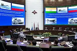 La Unión Soviética fue un importante proveedor de equipo de defensa durante varias décadas y este papel ha sido heredado por la federación rusa. Rusia con el 68%, EE. UU. con el 14% e Israel con el 7,2% son los principales proveedores de armas a la India (2012-2016), e India y Rusia han profundizado su cooperación en la fabricación elementos de defensa en la India mediante la firma de acuerdos para la construcción de fragatas navales, KA-226T helicópteros utilitarios bimotores (joint venture-JV) para hacer 60 en Rusia y 140 en India), misiles de crucero Brahmos (JV con 50.5% India y 49.5% Rusia) (actualización de diciembre de 2017).[29] En diciembre de 1988, se firmó un acuerdo de cooperación entre la India y Rusia, que dio lugar a la venta de una multitud de equipos de defensa a la India y también a la aparición de los países como socios para el desarrollo en lugar de una relación puramente de comprador y vendedor, incluida la proyectos de empresas conjuntas para desarrollar y producir la aeronave de combate de quinta generación (FGFA) y la aeronave de transporte multiusos (MTA). El acuerdo está pendiente de la firma de una prórroga de 10 años.[30] En 1997, Rusia e India firmaron un acuerdo de diez años para una mayor cooperación técnico-militar que abarcaba una amplia gama de actividades, incluida la compra de armamento completo, el desarrollo y la producción conjuntos y la comercialización conjunta de armamentos y tecnologías militares.[31]