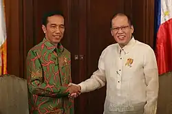 - ↑ «Briefer: Diplomatic relations between the Philippines and Indonesia». Official Gazette of the Philippines. Republic of the Philippines. Archivado desde el original el 2 de mayo de 2015. Consultado el 23 de febrero de 2017.