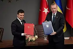 - ↑ «Спільна декларація Дев’ятого засідання Стратегічної ради високого рівня між Україною та Турецькою Республікою» [Declaración Conjunta de la Novena Reunión del Consejo Estratégico de Alto Nivel entre Ucrania y la República de Turquía]. Presidente de Ucrania.
