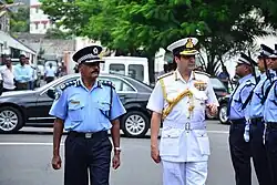 El almirante RK Dhowan inspecciona la guardia de honor en Mauricio