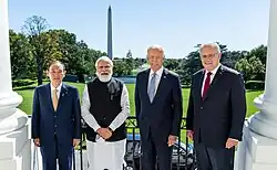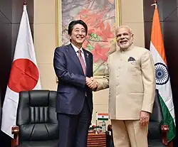 Aunque India sigue manteniendo una relación militar con Rusia,[29] Israel se ha convertido en el segundo socio militar de India,[26] mientras que India ha forjado una sólida asociación estratégica con Estados Unidos.[18][30] La política exterior de Narendra Modi indica un giro hacia la región asiática y, en términos más generales, hacia los acuerdos comerciales.