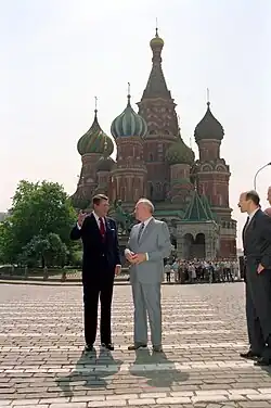 Cuando Mijaíl Gorbachov sucedió a Konstantín Chernenko como el Secretario General del Partido Comunista en 1985, esto señaló un cambio dramático en la política exterior soviética. Gorbachov persiguió políticas conciliatorias hacia el Oeste en vez de mantener el statu quo de Guerra Fría. La Unión Soviética terminó su ocupación militar de Afganistán, firmó tratados de reducción de armas estratégicas con los Estados Unidos, y permitió que sus países satélites en Europa del Este determinaran sus propios asuntos.