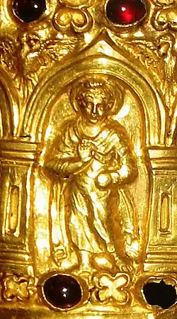 Estilísticamente, el relicario —oro incrustado con piedras preciosas— también es muy consistente con el arte de los escitas, como se conoce por ejemplo del sitio arqueológico de Tillia tepe en el norte de Afganistán. El tesoro de Tillya tepe también data del siglo I a. C., y también tiene lo que podrían ser las primeras representaciones figurativas de Buda, como la moneda budista de Tillia Tepe.