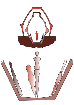 - Un ritual, que considera el sacrificio enterrado bajo las casas o en el asentamiento, de los animales, sus cabezas u otras partes, posiblemente asociado con la ceremonia de inmolación.[19]