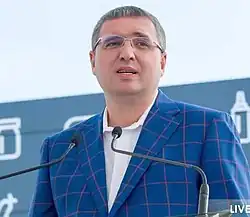 Renato Usatîi (Fălești, 4 de noviembre de 1978) es un político y empresario moldavo que se desempeña como presidente de Nuestro Partido desde el 8 de febrero de 2015.[1] Fue elegido alcalde de Bălți por dos mandatos (de 2015 a 2018 y de 2019 a 2021).[2] Participó en las elecciones presidenciales moldavas de 2020 y 2024 y en ambas ocasiones quedó en tercer lugar, asegurando el 16,9% y 13,8% de los votos, respectivamente.