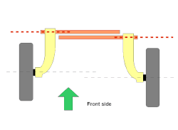 Como las barras de torsión traseras están situadas una detrás de la otra, la distancia entre ejes es más larga en el lado derecho que en el izquierdo.