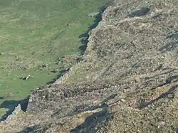 Se trata de una construcción de anchura variable, de 3 a 4,5 metros, con pérdidas en algunos tramos. Según José Sierra Álvarez se puede dividir en varias secciones: