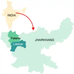![]() Localización de Palamau en el distrito de Latehar en India | ||