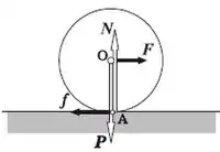 Consideremos, para comenzar, el caso ideal de un cuerpo indeformable (un cilindro o una rueda, por ejemplo) que puede rodar sobre una superficie plana también indeformable (Figura 2). Si la superficie es horizontal, las fuerzas que actúan sobre el cilindro son: su peso y la reacción normal del plano . Si ahora aplicamos una fuerza sobre el eje del cilindro, paralelamente al plano y perpendicularmente al eje, aparecerá una fuerza de rozamiento, , en A, en sentido opuesto a la fuerza aplicada . El momento de la fuerza de rozamiento respecto del eje del cilindro, hace girar el cilindro alrededor de su eje. Así, en el caso de cuerpos indeformables soportados por superficies indeformables, por más pequeña que sea la fuerza , se producirá la rodadura (siempre que exista suficiente rozamiento estático para evitar el deslizamiento). En estas condiciones no tienen sentido hablar de resistencia a la rodadura.