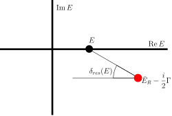 Este cambio brusco en el desfase de la transición se manifiesta como un cambio brusco en la sección eficaz. Si la energía en la que se produce el polo es