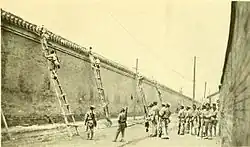 ![]() Tropas republicanas que luchan por retomar la Ciudad Prohibida el 12 de julio de 1917, después del intento de restauración imperial de Zhang Xun. | ||||