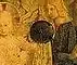 La rica y elegante alfombra de Anatolia que adorna el recinto real lleva el borde amarillo marcado alrededor del rojo palle Medici.[3] También presenta el Cáncer zodiacal y Piscis, posiblemente simbolizando el principio y el final del Concilio de Florencia.[8] La alfombra es solo otra forma en que los Medici podrían hacer su declaración de poder político a través del arte religioso.