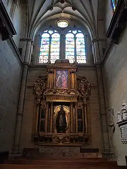 Consta de banco, un único cuerpo, tres calles y un ático. Las trazas y las pinturas se deben a Juan de Peñalosa y la arquitectura corrió a cargo de Francisco Ruiz, supervisada por el arquitecto Pedro Álvarez de la Torre. El dorado lo hizo Juan de Meaza (en 1630). El retablo mide 8 x 5,10 x 5 m. La imagen titular es la Inmaculada de Gregorio Fernández situada en el centro y delimitada por pares de columnas entorchadas.