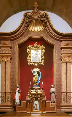 En cuanto a la imaginería, solo hay una figura: el Sagrado Corazón, efigie de 2 metros que guarda consonancia con el relieve del altar. De acuerdo con el inventario de 1983, esta talla de madera, de excelente calidad, fue realizada por José Núñez en 1928,[5]: 193 si bien es probable que esta imagen sea el reemplazo de una anterior puesto que esta advocación fue extendida por los jesuitas a lo largo y ancho de España en el siglo xviii, siendo una de sus iconografías predilectas,[8]: 350–351 pese a lo cual por entonces en Galicia solo había congregaciones dedicadas a esta advocación en Pontevedra y Vigo. Por su parte, el retablo resulta muy difícil de fechar dada su simpleza, aunque es posible que fuese creado ex profeso para la imagen.[2]: 450