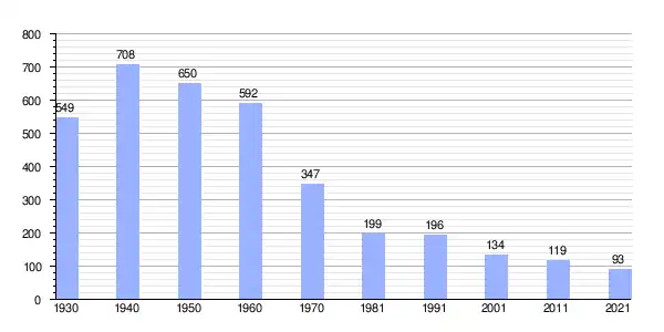 | Gráfica de evolución demográfica de Retamoso de la Jara[3] entre 1930 y 2021 |