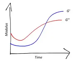 Para medir el módulo elástico de un material durante la reticulación, se puede utilizar un reómetro .[3] Mediante el análisis mecánica dinámica es posible medir el módulo dinámico (G) y los componentes conservadores (G ') y disipativos (G ") correspondientes. La variación de los dos componentes a lo largo del tiempo es una indicación del grado de progreso de la reacción.