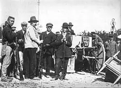 Mientras tanto, a pesar de los evidentes éxitos electorales logrados por el movimiento republicano, el sector más revolucionario del partido se mostraba favorable a la lucha armada como mejor medio para tomar el poder a corto plazo. Fue esta sección la que salió victoriosa en el congreso del partido realizado en Setúbal entre el 23 y el 25 de abril de 1909.[55] La cúpula, compuesta por moderados como Teófilo Braga, Basílio Teles, Eusébio Leão, José Cupertino Ribeiro y José Relvas, recibió del congreso la orden de hacer la revolución. Las funciones logísticas de preparación de la intentona se confiaron a los elementos más radicales. El comité civil estaba formado por Afonso Costa, João Chagas y António José de Almeida, mientras que el almirante Cândido dos Reis lideraba el comité militar.[56] António José de Almeida fue el encargado de la organización de las sociedades secretas como la Carbonaria — en cuya cabeza se integraba el comisario naval António Machado Santos[57] —, la Francmasonería[58] y la "Junta Liberal", dirigida por Miguel Bombarda. Este eminente médico fue el artífice de la importante acción de propaganda republicana por el medio burgués y que trajo muchos simpatizantes a la causa republicana.[59]