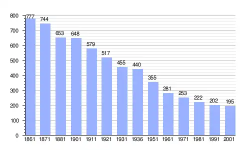 | Gráfica de evolución demográfica de Rhêmes-Saint-Georges entre 1861 y 2001 |