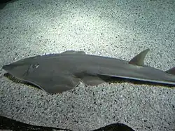 En su parte anterior es similar a una raya y en su parte posterior a un tiburón. Su hocico es alargado y puntiagudo, con los ojos ubicados delante de los espiráculos. Detrás de las aletas pélvicas, se encuentran las dos aletas dorsales. La cola no presenta lóbulos. Su piel tiene una fila de espinas en la parte central. El color dorsal varía entre gris pardo y amarillento, mientras que la zona ventral es blanca. Pueden alcanzar hasta 1 metro de longitud.[3]
