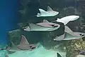 En algunos acuarios, las rayas gavilán nadan en tanques poco profundos donde se pueden sumergir los visitantes y tocarlas. A estas rayas se les ha neutralizado el aguijón. El más conocido se encuentra en el estadio Tropicana Field donde juegan los Tampa Bay Rays de la Major League Baseball.