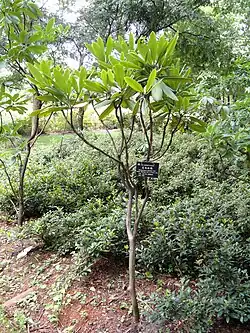 Es un arbusto que alcanza un tamaño de 1.5–2 m de altura, con hojas coriáceas que son estrechas lanceoladas, a obloga-elípticas de 7–10 por 2–3.7 cm de tamaño. Las flores son predominantemente de color blanco.