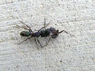 - ↑ a b c d e f «Green-head Ant». The Australian Museum (en inglés). Consultado el 15 de agosto de 2025.