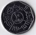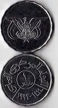 1 rial | 1993- | Acero | Circular | 20,00 | 2,75 | Estriado | Escudo de armas | ريال ١ - البنك المركزي اليمني - año de acuñación | |