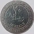20 riales | 2004 | Acero | Cu+Ni+Zn | Circular | 30,00 | 7,10 | Estriado | Drago | ريال ٢٠ - البنك المركزي اليمني - CENTRAL BANK OF YEMEN - año de acuñación |