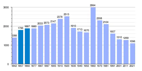| Gráfica de evolución demográfica de Ribarroja de Ebro[5] entre 1842 y 2021 |