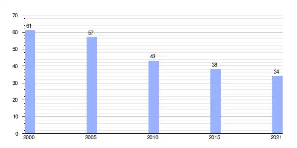 | Gráfica de evolución demográfica de Ribas de Miño entre 2000 y 2021 |