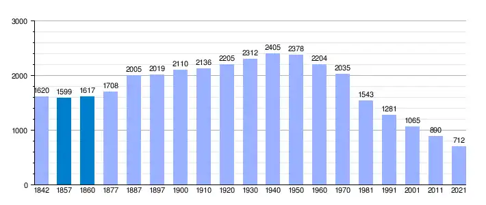 Población de derecho según los censos de población del INE Población de hecho según los censos de población del INEEn 1857 disminuye el término del municipio porque independiza a Castrotierra[7] |
