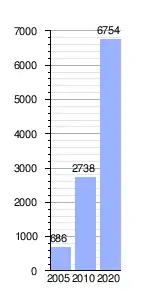 | Gráfica de evolución demográfica de Rinconada de los Ángeles entre 2005 y 2020 |