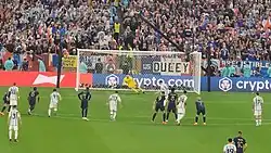 ![]() Lionel Messi convierte un penal en gol en la Final del Mundial de Qatar 2022 entre Argentina y Francia. | ||