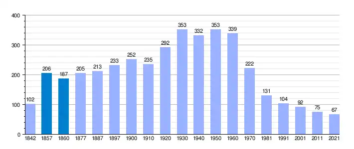 | Gráfica de evolución demográfica de Rivilla de Barajas[7] entre 1842 y 2021 |
