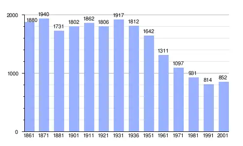 | Gráfica de evolución demográfica de Rocchetta di Vara entre 1861 y 2001 |