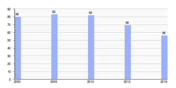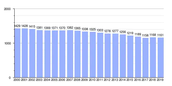 | Gráfica de evolución demográfica de Rodís (parroquia) entre 2000 y 2019 |