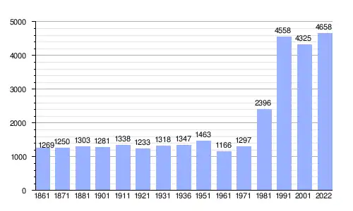 | Gráfica de evolución demográfica de Rodano entre 1861 y 2022 |