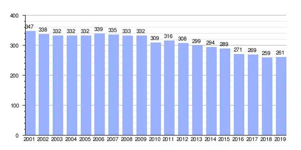 | Gráfica de evolución demográfica de Rodeiro (parroquia) entre 2001 y 2019 |
