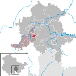 Se encuentra ubicado al sur de la ciudad de Weimar, y a poca distancia al norte de la frontera con el estado de Baviera.