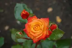 R. 'Mambo' híbrido conseguido del cruce de 'Tropicana' x 'Zorina'. Obtentor conseguido por Mathias Tantau jun., Alemania, 1971. | |
