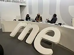 ![]() Rosa Perez, en el stand de RTVE, Radio Nacional de España, entrevistando en la feria de arte contemporáneo ARCO 2022 | ||
