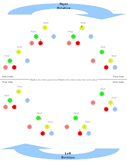 Utilizando la terminología de raíz para el nodo padre de los subárboles para girar, Pivot para el nodo que se convertirá en el nuevo nodo padre, RS lado rotación a girar y OS para el lado opuesto de la rotación. En el diagrama anterior para la raíz Q, el RS es C y el sistema operativo es P. El pseudo código para la rotación es: