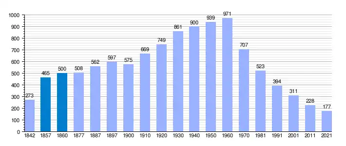 | Gráfica de evolución demográfica de Royuela de Río Franco[8] entre 1842 y 2021 |