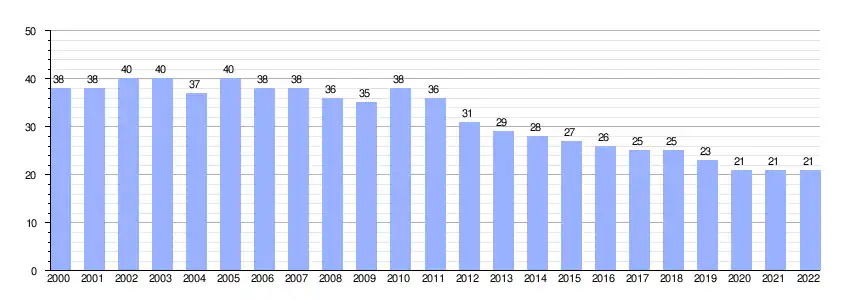 | Gráfica de evolución demográfica de Rozagás entre 2000 y 2022 |