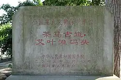 El 5 de marzo de 2013, el Camino Antiguo del Té y el Caballo fue anunciado por el Consejo de Estado de la República Popular China como la séptima tanda de unidades clave de protección de reliquias culturales.[15]