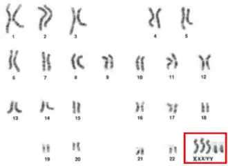 ![]() Cariotipo hipotético de un genotipo XXXYY | ||